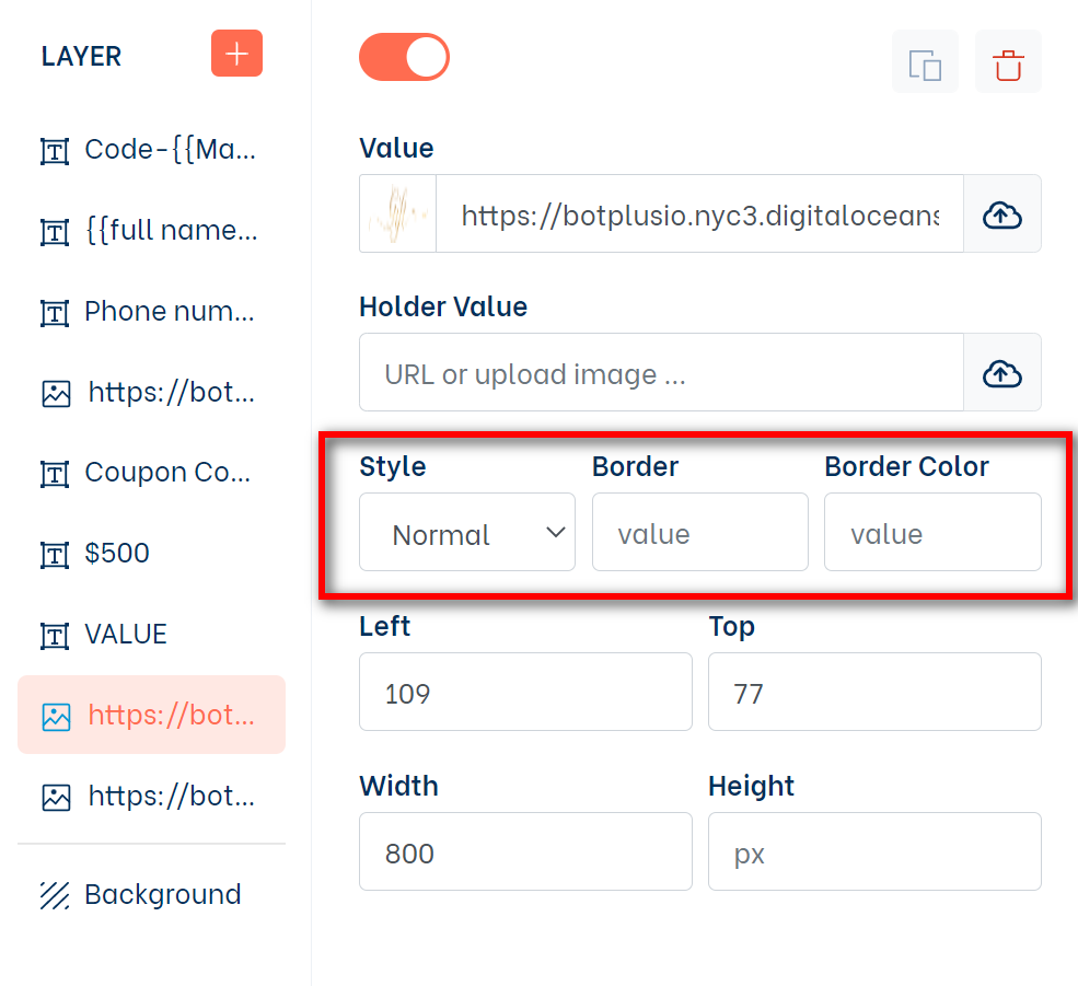 Bạn có thể tùy chỉnh Style của ảnh là thường hay hình tròn. có thể tạo border (viền) và border color cho ảnh.