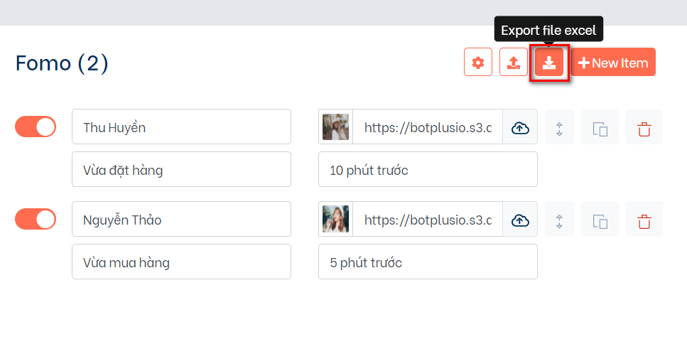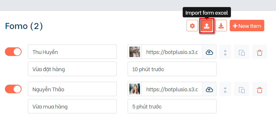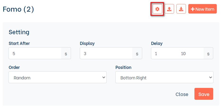 Để cấu hình cho cơ chế hiển thị fomo các bạn có thể truy cập vào icon Setting